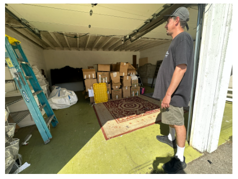 Here is Xander in the back EMPTY garages….except for all of these great headboards that are still for sale.